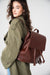 Średniej wielkości plecak zaprojektowany w miękkim, minimalistycznym kształcie. Zapinany na magnes i skórzane sznurki. Wyposażony w małą kieszeń na suwak wewnątrz. Plecak był używany do sesji zdjęciowej.