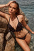 Nasza modelka ma na sobie górę od bikini w rozmiarze M i dół od bikini w rozmiarze S. Ma 172 cm wzrostu, 90 cm obwodu biustu, 66 cm obwodu talii i 96 cm obwodu bioder, a jej rozmiar to miseczka C.