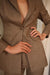 Marynarka garniturowa z jednym wysokim guzikiem. Z nieskazitelnymi wykończeniami i klapami, które subtelnie opadają na ramiona, dodając wizualny detal. Dostępne są pasujące spodnie, aby uzyskać potężny wygląd.