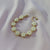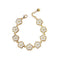 Bransoletka z motywem mini stokrotek została starannie wykonana ręcznie z 9 porcelanowych kwiatów. Prosty, a zarazem klasyczny wzór w stokrotkę, oddający esencję delikatnej kobiecości. Idealna dla przyszłej panny młodej, ponadczasowy wygląd tej bransoletki gwarantuje, że będzie ona cenną pamiątką na długie lata, służącą jako piękne przypomnienie radosnej i doniosłej okazji. Dostępny jest również pasujący naszyjnik.