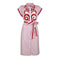 Idealna bawełniana koszula-sukienka w paski, która podniesie stylizację Twojej letniej garderoby! Zapięcie na guziki z przodu i wiązanie w talii zapewniają korzystny krój, a ten design łączy klasyczną strukturę z przyciągającymi wzrok akcentami. Czerwona wstążka w zygzak na kołnierzyku i pasku dodaje zabawnego akcentu kolorystycznego, a asymetryczny dół i delikatny haft paisley nadają jej wdzięk i urok. To stylizacja, która sprawi, że poczujesz się dobrze i będziesz wyglądać wyjątkowo każdego letniego dnia.