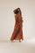 Ten styl został uszyty ze 100% bawełny organicznej, która luźno opada do sięgającego do podłogi dołu z bardzo niskim tyłem i wdzięcznym, przyciągającym wzrok tylnym skrzydełkiem. Zwiewna sukienka „Syros” została ręcznie farbowana, aby uzyskać ponadczasowy, wyrazisty wygląd.