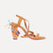 Sandał na obcasie z plecionej skóry, wykonany ręcznie, w 6 kolorach: camelowym, żółtym, pomarańczowym, czerwonym, różowym i turkusowym.