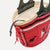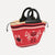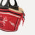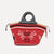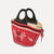 Materiały: dzianinowy element wykonany w 100% z bawełny, haftowany tym samym materiałem; Kolor tła - czerwony, czarny i kremowy; Wewnętrzna torba z płótna pochodzącego z recyklingu: 70% bawełny/30% wiskozy; Metka skórzana i pasek na rękę w kolorze wielbłądzim.