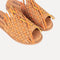 Klapki z ręcznie plecionej skóry, w różnych kolorach: pomarańczowym, żółtym i camelowym.