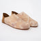 Bambosze ze skóry i płótna barwionego naturalnym ekodrukiem. Ręcznie haftowany rafią.