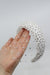 Korona jest pokryta białą tkaniną z cekinami. Pod tkaniną znajduje się podszewka z tkaniny w kolorze srebrnym, którą można lekko zobaczyć przez tkaninę z cekinami. Biała miękka tkanina tiulowa jest wszyta w dół opaski dla zapewnienia maksymalnego komfortu.