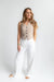 Mycie rąk; Prać w pralce w maksymalnej temperaturze 30°C, na niskich obrotach; Brak czyszczenia chemicznego; Nie wybielać; Nie suszyć w suszarce; W razie potrzeby prasuj w maksymalnej temperaturze stopy 110°C i gdy spodnie są jeszcze mokre.