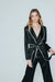 Elegancki, czarno-biały, satynowy strój na dzień i na noc. Nasz cyklamenowy zestaw składający się ze spodni i marynarki z satynowym paskiem. To odpowiednia opcja na pracowity dzień lub szaloną noc. Połącz go z czółenkami, aby uzyskać wyrafinowany wygląd lub stonuj ją sneakersami. Tak czy inaczej będzie wyglądać niesamowicie.