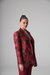 Podkreśl swój styl dzięki tej efektownej czerwonej marynarce w kwiaty. Ten element garderoby, charakteryzujący się odważnym czerwono-różowym kwiatowym wzorem na bogatym brązowym tle, dodaje wyrafinowanego akcentu każdemu strojowi. Stworzone z myślą o dopasowanym kroju.