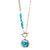 Zawieszka w kształcie szkła powiększającego, wypełniona żywymi turkusowymi kryształami, stanowi urzekający element centralny, łączący piękno i funkcjonalność. Zapięcie typu toggle zapewnia bezpieczne dopasowanie, dodając nowoczesnego akcentu temu inspirowanemu naturą elementowi.
