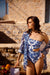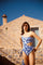 Zanurz się w letniej rozkoszy dzięki naszemu urzekającemu jednoczęściowemu kostiumowi kąpielowemu, ozdobionemu hipnotyzującym niebiesko-białym wzorem przypominającym idylliczne greckie wyspy. Niezależnie od tego, czy wypoczywasz przy basenie, czy bawisz się na falach, ten strój kąpielowy emanuje swobodnym stylem i urokiem. Dzięki atrakcyjnej sylwetce i wygodnemu krojowi jest to idealny wybór, jeśli chcesz stylowo rozkoszować się słońcem. Poczuj urok Morza Śródziemnego i złóż oświadczenie, gdziekolwiek zabiorą Cię letnie przygody, dzięki temu oszałamiającemu jednoczęściowemu kostiumowi kąpielowemu.