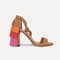 Sandały na obcasie z frędzlami na pięcie w czterech kolorach: camelowym, pomarańczowym, czerwonym i różowym.