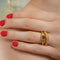 Dodaj odrobinę koloru i blasku do swojego stroju dzięki naszemu pierścionkowi Encased Love. Wykonany w zrównoważony sposób z luksusowym złoceniem, ten delikatny pierścionek ma granat w kształcie serca w środku zaakcentowany kryształowym blaskiem. Odkryj moc symboliki granatu i noś ten pierścionek jako przypomnienie trwałych historii miłości i namiętności, odzwierciedlając opowieści o szczerych związkach i cenionych chwilach. Gładka, polerowana faktura złocenia uzupełnia bogaty kolor granatu, tworząc harmonijną mieszankę elegancji i fantazji. Idealny do dodania zabawnego, ale wyrafinowanego akcentu do każdego stroju, pozwól, aby ten pierścionek zainspirował Cię do jasnego blasku i emanowania pewnością siebie, gdziekolwiek się udasz.