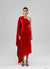 Kaftan z drapowaniem z jednej strony, dekoltem w kształcie muszli i kolorowymi frędzlami.