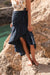 Asymetryczna spódnica kopertowa – uniwersalny model zaprojektowany z myślą o stylu i wygodzie. Ta elegancka spódnica ma długie, kopertowe wiązania dla indywidualnego dopasowania, delikatne falbanki wzdłuż krawędzi oraz charakterystyczną metalową metkę z logo z tyłu.