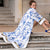 Wykonane ze 100% oddychającej bawełny , to zwiewne arcydzieło inspirowane jest wspaniałością paryskich salonów XIX wieku oraz ozdobnym pięknem połączenia Wschodu z Zachodem. Delikatny niebiesko-biały nadruk nawiązuje do antycznej porcelany , a subtelne złote cekiny mienią się na tkaninie niczym pociągnięcia pędzla.