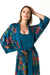 Niebieska tkanina żakardowa z motywem kwiatowym w połączeniu z miękką w dotyku niebieską tkaniną cupro na rękawach i przednim kołnierzu.