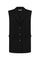 Prosta grafitowa kamizelka ma wykładany kołnierz i dekolt w serek, zapinany z przodu na guziki.