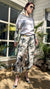 Ta bluzka z długim rękawem ozdobiona jest nadrukiem Oasis Mirage , który idealnie współgra z eleganckim tropikalnym motywem palm, bananowców i ptaków.