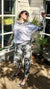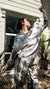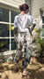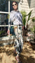 Biała bluzka, wykonana z luksusowych naturalnych tkanin , ozdobiona jest artystycznym nadrukiem oazy na wysokich mankietach i idealnie pasuje do spodni z nadrukiem oazy.