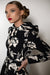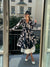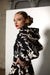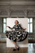 RainSisters | Dopasowany płaszcz ze spódnicą z pełnego koła w kolorze czarno-białym „Blooming Night”
