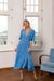 Opis:Delikatna i zwiewna sukienka SKY o długości midi w pięknym niebieskim kolorze. Ta wersja sukienek to propozycja dla kobiet, które umożliwiają połączenie z elegancją. Jest efektowna i kobieca oraz podkreśla cechy kobiecej urody. Została wykonana z niezwykle podstawowych tkanin cupro z rozporkami na lewych i lewych węzłach, które dodają zmysłowości i kobiecości. Głębokie dekolt w kształcie litery V, zniewalająco eksponuje szyję, odcięcie pod linią biustu wysmukla. Sukienka ma luźne, krótkie rękawy i ukryty suwak. SKY to sukienka, która wyraziła Twoją indywidualność i oryginalność, wykorzystała ją na co dzień i na wiele okazji.