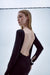 Sukienka Iris jest wykonana z miękkiej, czarnej dzianiny, ma szykowne odkryte plecy i eleganckie, długie rękawy.