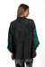 Tył, kieszenie i pasek w czarnym żakardowym wzorze. Czarny kwiatowy materiał na szmaragdowo zielonym przodzie i rękawach.