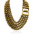Nasz naszyjnik Irena składa się z czterech sznurów przetartych złotych koralików, wykończonych wyrazistym, rzeźbiarskim zapięciem, które dodaje mu nowoczesnego charakteru.