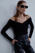 Bluzka Monique projektu Nazlı Ceren wykonana z miękkiej tkaniny jarsey o lśniącym połysku i eleganckim dekolcie.