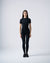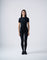 Ten zestaw łączy w sobie koszulkę z marszeniami po bokach, które podkreślają talię, oraz gładką i elegancką gumkę. Dekoracyjne wiązania nadają strojem dynamiczny i personalizowany charakter. Idealne połączenie sportowego stylu i miejskiej elegancji.