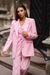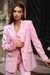 Tkanina garniturowa o średniej grubości Sylwetka oversize Wyściełane ramiona Klapy szpiczaste Konstrukcja klamry na klatce piersiowej Kieszeń na piersi z iluzją Kieszenie z klapką z przodu Podwójne zapięcie z przodu na guziki Rozcięcie z tyłu Podszyta w 100% naturalną wiskozą Powłoka główna: 70% wiskoza, 30% poliester