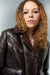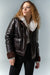 Kurtka z owczą skórą Isis - Brąz ciemny - Krótki, pudełkowy krój wykonany z francuskiej, kręconej owczej skóry Merino z Alp. Kurtka charakteryzuje się kontrastem faktur: gładkiej skóry na zewnątrz i gęstej, kręconej wełny wewnątrz, co zapewnia strukturę i ciepło. Ręcznie wykończone brzegi, duże kieszenie i wysoki kołnierz podkreślają jej charakter. Klasyczny fason pilotki, odświeżony dzięki luksusowym, naturalnym materiałom. Wyprodukowano w Turcji, szyte na zamówienie.