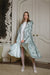 Trencz w odświeżającym pastelowym, miętowym odcieniu, wykonany z wodoodpornego, jasnego materiału wierzchniego i ozdobiony ciemnozielonym kwiatowym nadrukiem. Ten klasyczny dwurzędowy styl ukazuje ponadczasową elegancję, dzięki czemu jest idealnym, wyróżniającym się dodatkiem do Twojej garderoby. Otul się tym płaszczem i pozwól, aby delikatna satynowa podszewka w dopasowanej miętowej zieleni szeptała tajemnice wiosny przy każdym ruchu.