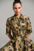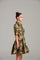 Ta oszałamiająca sukienka ma żywy i misterny nadruk inspirowany dżunglą, przedstawiający różnorodne bujne zielone liście i majestatyczne dzikie zwierzęta, takie jak lamparty i zebry, na głębokim, ziemistym tle. Sukienka ma dopasowany gorset z klasycznym dekoltem z kołnierzykiem i krótkimi rękawami, co nadaje jej wytworny i wyrafinowany wygląd. Talia jest wyraźna i przechodzi w pięknie rozkloszowaną spódnicę w kształcie litery A, która dodaje sylwetce ruchu i wdzięku. Idealna na wyraziste wrażenie, ta sukienka łączy w sobie elegancję z odrobiną przygód.