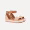 Skórzane sandały z paskiem i aplikacją z dzikiej juty z tyłu. Skórzany pasek z mosiężną klamrą.