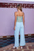 Oto idealna koszulka na ramiączkach na plażę i do baru – wykonana z elastycznego poliestru spandex, ma stałe ramiączka, okrągły dekolt i efektowne wycięcie z przodu z detalami z żywicy. Uwielbiamy ją w połączeniu ze spodniami lub szortami The Hermosa, w zależności od tego, co wybierzesz tego lata.