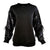 Ta wyróżniająca się czarna bluza typu pullover ma błyszczące rękawy z cekinami i czarne, sztuczne pióra, które dodają klasycznej sylwetce dramatyzmu i blasku. Zaprojektowana z okrągłym dekoltem i wykończona ściągaczami przy mankietach, u dołu i kołnierzu, jest jednocześnie wyrazista i wygodna.