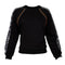 Ta czarna bluza łączy w sobie swobodny komfort i kobiecą elegancję. Klasyczny, okrągły dekolt ze ściągaczami przy mankietach, u dołu i przy szyi, zdobią misterne, czarne, koronkowe detale z gipiury, które dodają jej szykownego, wyrafinowanego charakteru.