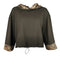 Ta dzianinowa bluza łączy w sobie swobodny komfort i eleganckie detale. Z luksusową, matową, złotą wiskozą z nadrukiem na mankietach i pod kapturem, jest miękka jak jedwab i wygląda niezwykle elegancko.