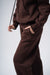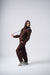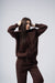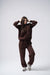 Ten zestaw składa się z bluzy z kapturem i kieszenią z przodu, ozdobionej charakterystycznymi, strukturalnymi detalami na ramionach. Spodnie są proste i szerokie, zapewniające maksymalny komfort podczas codziennego noszenia. Całość charakteryzuje się nowoczesnym i unikalnym stylem, który wyróżnia się na tle klasycznej odzieży sportowej.
