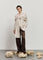 Cechą charakterystyczną modelu jest prosta sylwetka oraz szal w komplecie.