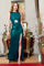 Sukienka brokatowa w kolorze zielonym wykonany z luksusowej włoskiej tkaniny w stylu maxi. Sukienka Sarvin z wycięciami po bokach elegancko podkreśla sylwetkę, z rozcięciem sięgającym uda.