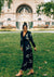 - Czarny wzór paisley z panelami z czarnego aksamitu