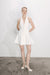 Sukienka Camille wykonana jest z krepy w kolorze białym. Dekolt w serek elegancko eksponuje szyję, a wiązanie na szyi dodaje sukience elegancji.