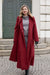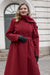 RainSisters | Ciepły dwurzędowy płaszcz z kapturem i szalikiem | Zimowy bordowy