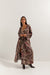 Our midi FRAPPE with a kimono oversize cut is made of soft viscose with a unique print in autumn colours. The dress has an envelope cut with a deep V neckline optically elongating the neck and emphasising the neckline. Tied at the waist with a long belt, it guarantees a perfect fit to any silhouette without restricting movement. Our FRAPPE is breathable and flows beautifully with movement. It features a versatile boxy cut with wide sleeves, an overlap tie to accentuate the waist creating a dress with exceptional character. It is an extremely versatile proposition that you can style for many autumn occasions. Undoubtedly, this dress will highlight your individuality and make you stand out from the crowd.