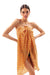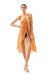 100% Cupro Uzun dekolteli bluz Altın halka aksesuardan uzanan biyelerle ensede bağlanır Orta ağırlıkta yapı İpeksi kumaş terletmez, nefes alır, yüksek konfor garantilidir. Resimdeki mankenin giydiği ürün bedeni XS/S (34/36) bedendir. Manken ölçüleri: 89/61/92, Boy: 1.79 cm